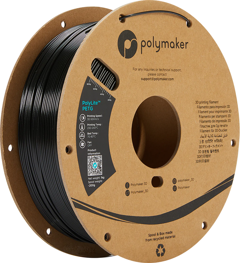 PolyLite™ PETG is an affordable PETG filament with balanced mechanical properties and ease of printing. It is one of the best performing PETG filaments for 3DQue automation.