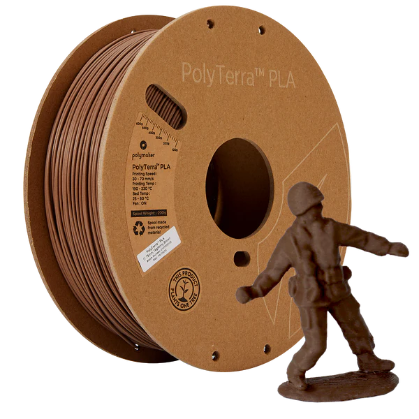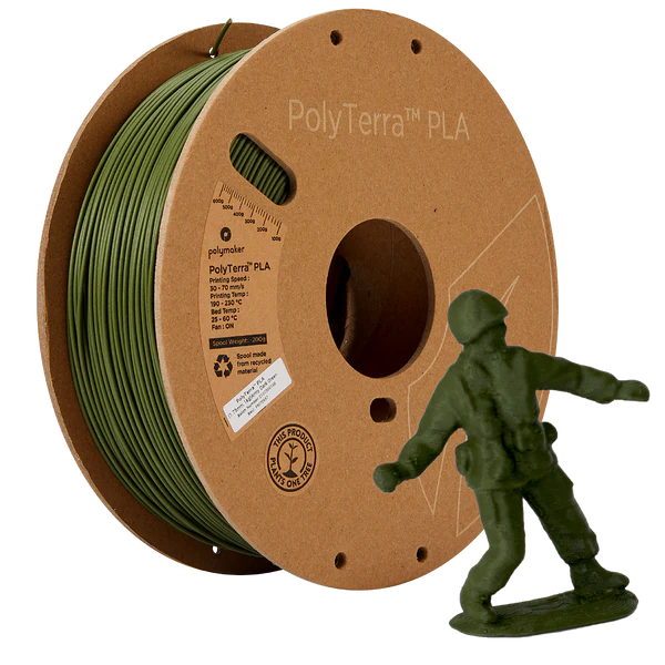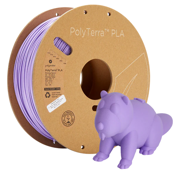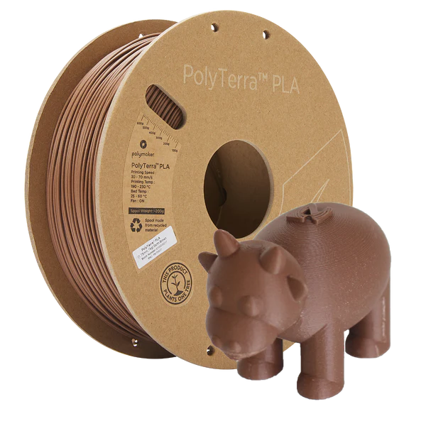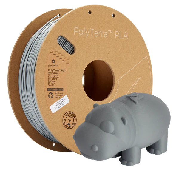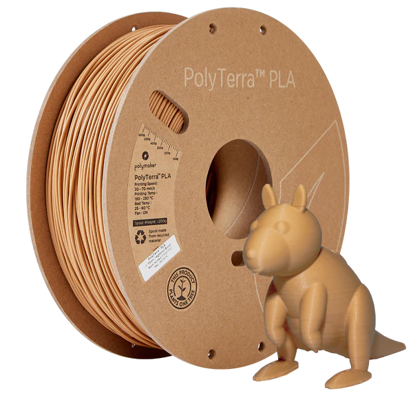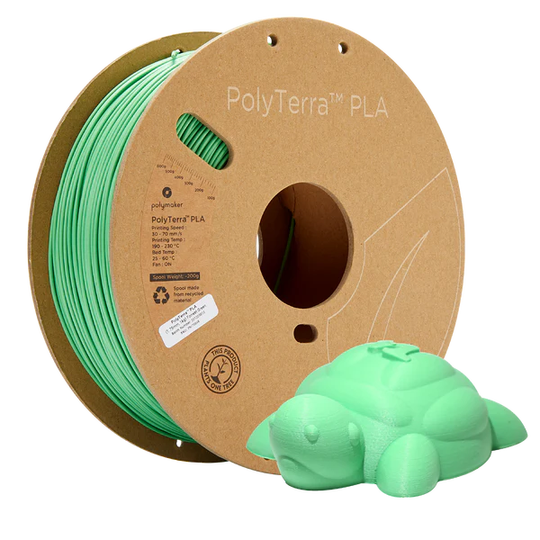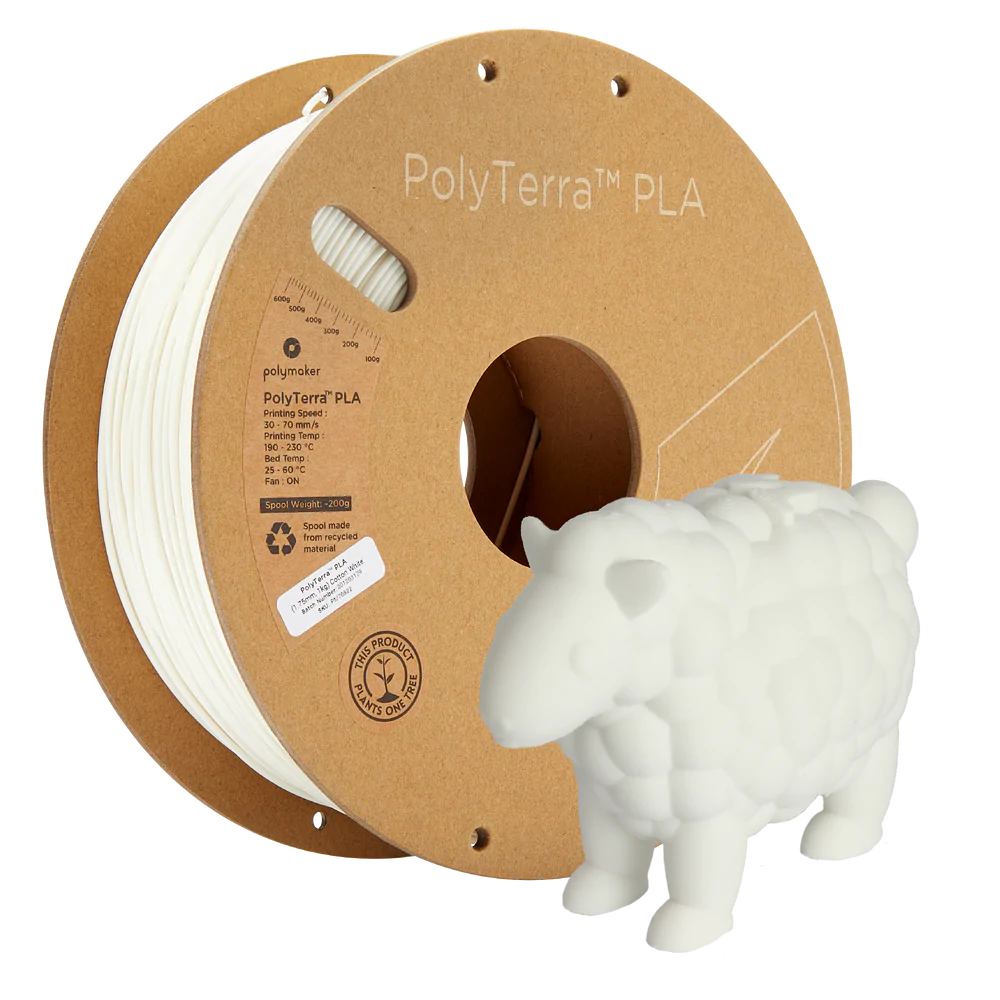 PolyTerra™️ PLA is a bioplastic based 3d printing filament designed from the ground up to create the next generation of PLA, providing ease of use, printing quality, speed and reliability. It is a sustainable product sourced naturally and for every spool sold a tree is planted to give back to the earth. The packaging and spool are made from recycled cardboard.